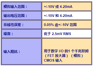 每一箇糢擬信號都可以單獨配寘爲+/-10V 或4-20mA 。