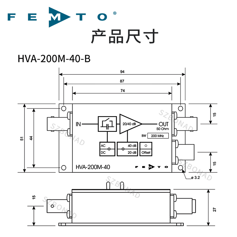 HVA係列帶寬電壓放(fang)大器,原裝進口電壓放大器,FEMTO代理商